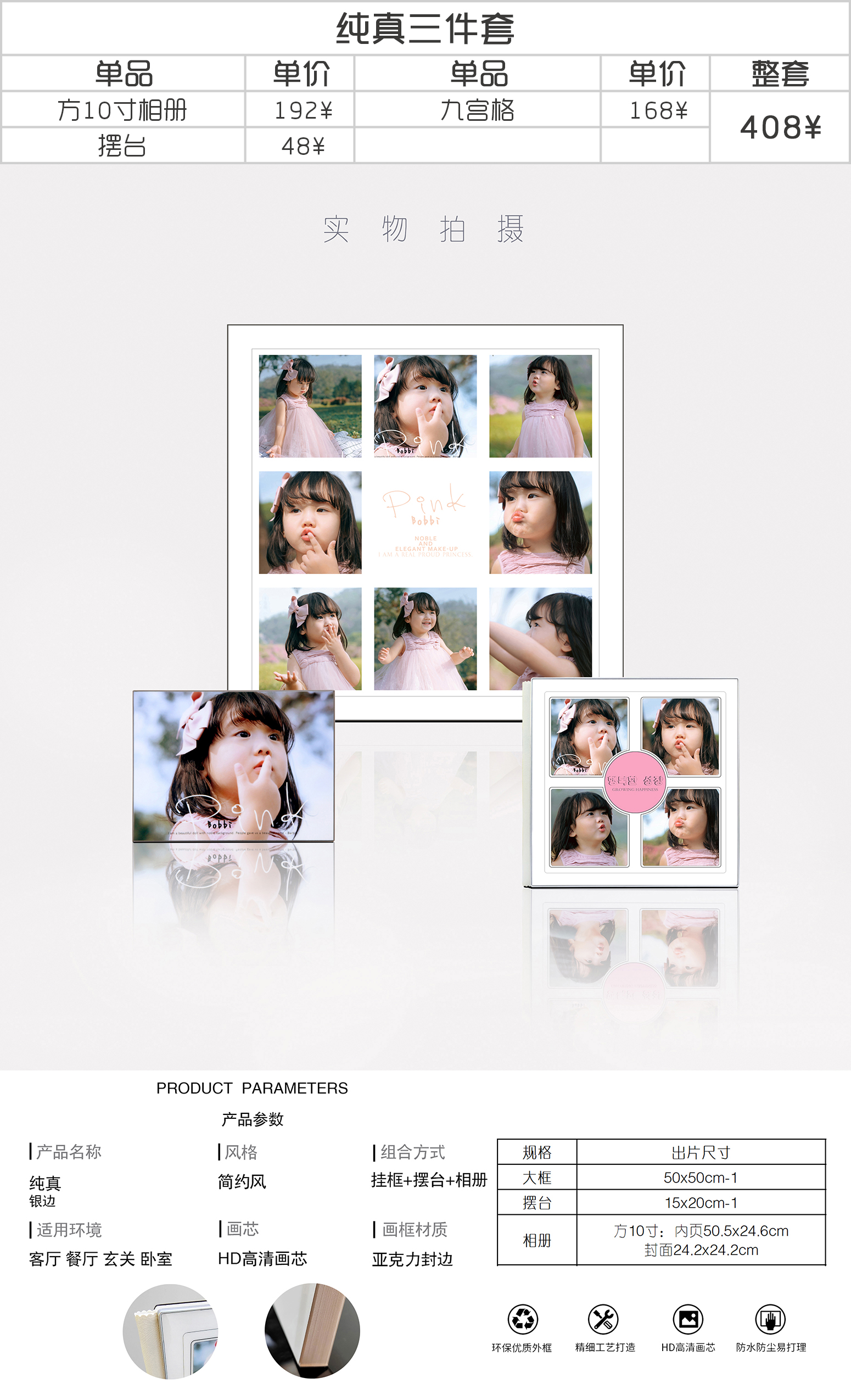 本店一切产品为定制产品(套系产品可单独购买其中单品,婚纱套系里的相册默认为10P内页,儿童套系里的相册默认为8P内页,加做内页需在原价基础上按增加页数加收费用。),客户确认定稿后才会进入制作流程,因是定制产品,进入制作流程后是不支持退货的,定制类产品是不能二次销售的,还请理解。如有疑问请通过【关于本店】板块,联系我们了解相关细节。谢谢!(所有产品价格均不包含任何修片和设计费用,如需修片或者设计请访问【后期服务】板块了解各类服务收费标准。)